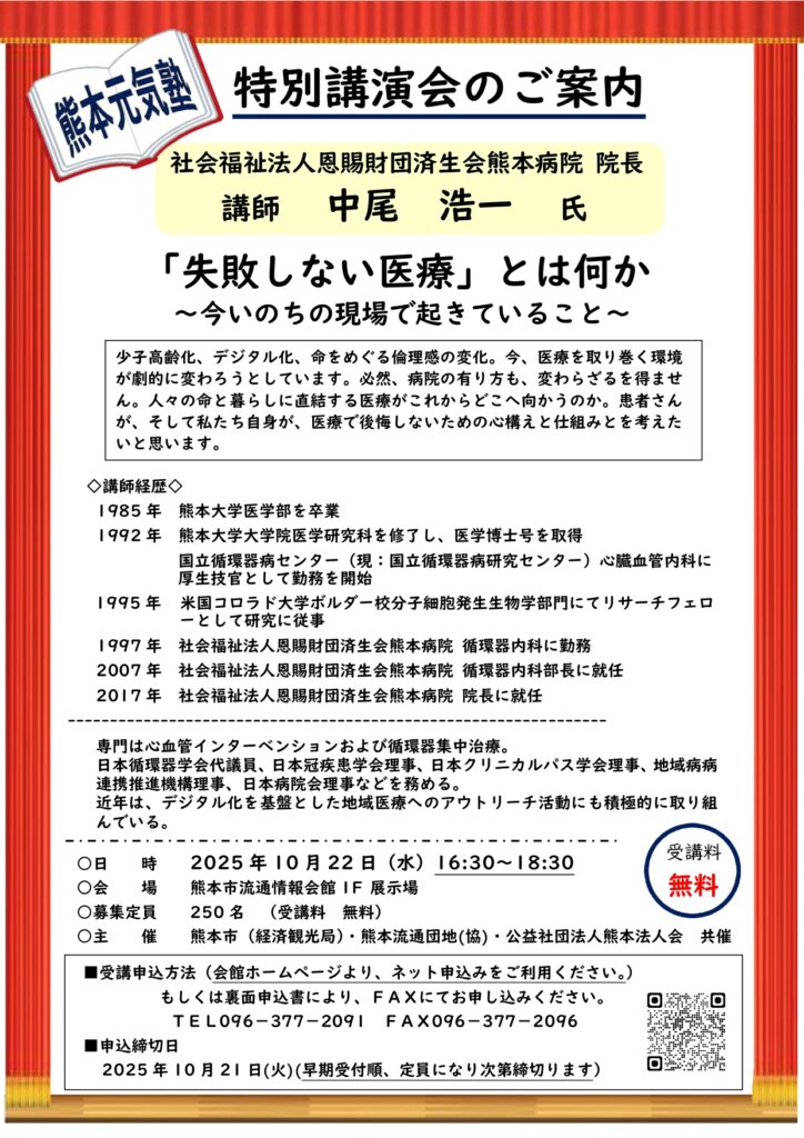 【熊本流通団地協同組合からのお知らせ】熊本元気塾「特別講演会」のご案内